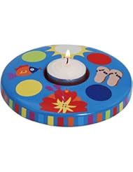 Furniture: 5.5 Inch Magnolia Flower Design Sandal Striped Blue Tealight Holder - ATD